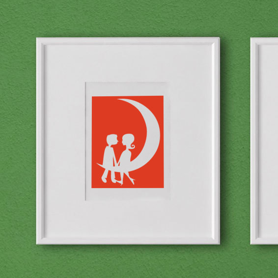 Sticker / Decal: kiss, moon, couple, love