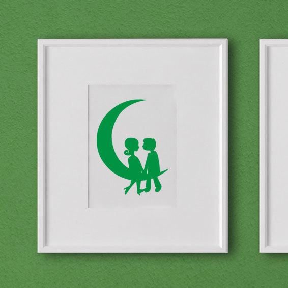 Sticker / Decal: kiss, moon, couple, love