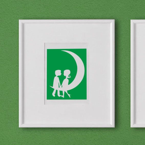 Sticker / Decal: kiss, moon, couple, love