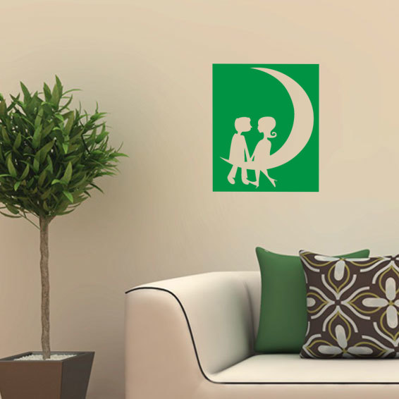 Sticker / Decal: kiss, moon, couple, love