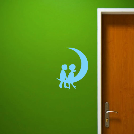 Sticker / Decal: kiss, moon, couple, love
