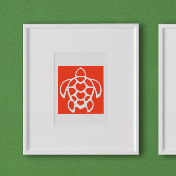 Sticker / Decal: turtle, heart, surf, animal