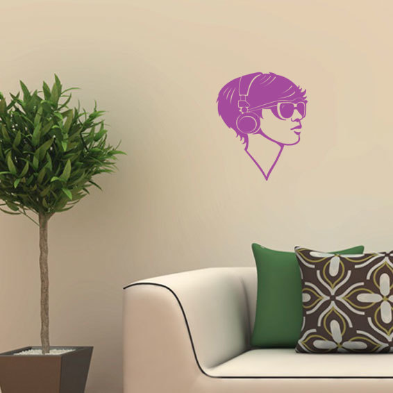 Pegatina de Vinilo: auriculares, cara, musica