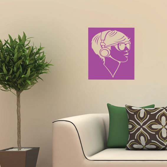 Pegatina de Vinilo: auriculares, cara, musica