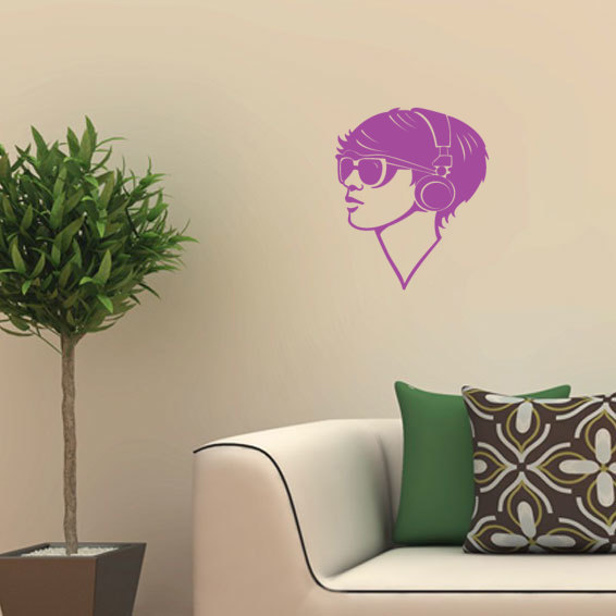 Pegatina de Vinilo: auriculares, cara, musica