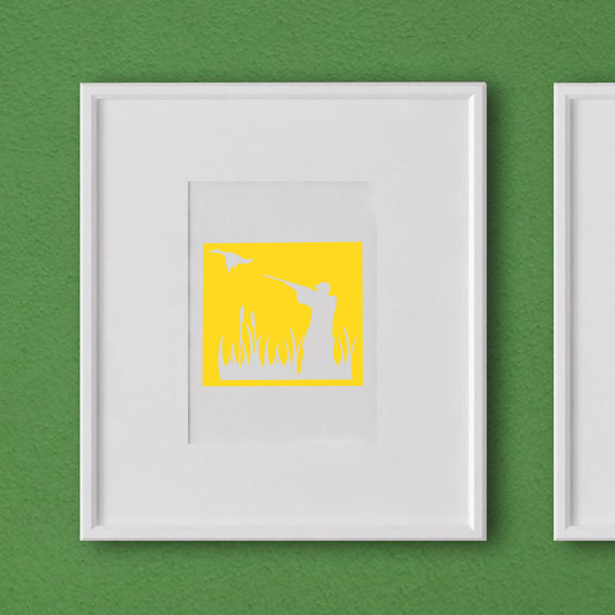 Pegatina de Vinilo: cazador, pato, arma